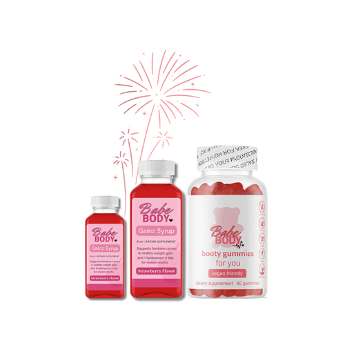 ✔ The butt/hips/thighs (Weight Gain) Syrup is available in three flavors: Chocolate, Peanut, and, Strawberry